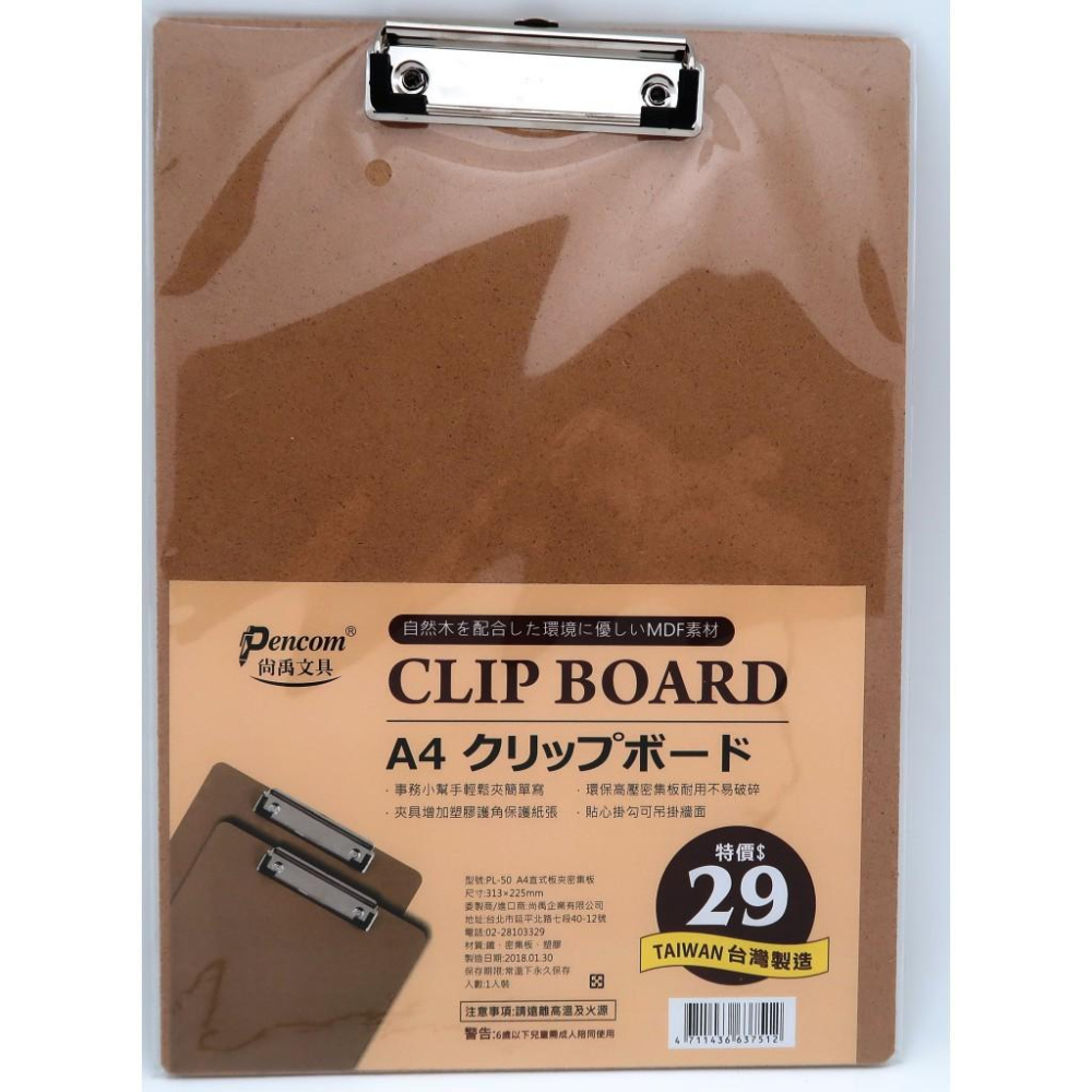 Pencom 尚禹 PL-50 A4 直式板夾 密集板 文件夾 臺灣製造