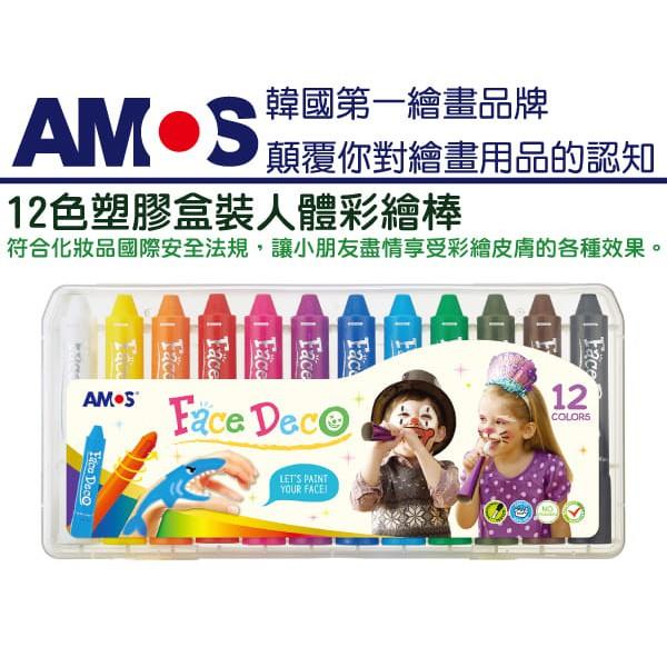 韓國 AMOS 萬聖節聖誕節 無毒 12色人體彩繪棒 12色塑膠盒人體彩繪棒 FD5PC12