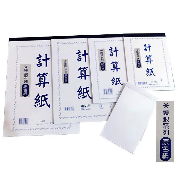 規格 品名 尺寸(mm) 數量(包) 售價NT$ 13K計算紙-薄 205*288 10本 300 18K計算紙-薄 180*260 10本 200 25K計算紙-薄 145*205 10本 150 36K計算紙-薄 130*180 20本 200 48K計算紙-薄 97*179 20本 200 56K計算紙-薄 97*152 20本 200 72K計算紙-薄 90*130 20本 200