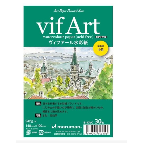 日本 Maruman S143VC vif Art 中目水彩 明信片 水彩紙 30張 148*100mm (綠色)