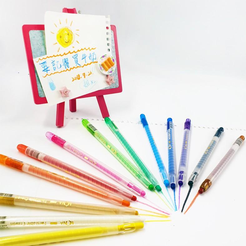 品牌: MONA 特色: * 突破以往蠟筆容易折斷、不易保存的缺點 * 有塑膠外殼保護,要用多長就轉多長,用完再捲回殼內, 不僅保存方便,使用上也不沾手,既美觀又方便,創造樂趣、色彩變化,繪畫或筆記重點皆可使用 * 色彩鮮豔、安全無毒、 使用安全,多種顏色可供選擇 * 材質:白臘、油脂、顏料
