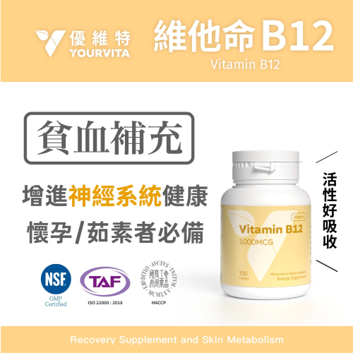 ◆商品名稱:Your Vita 優維特維他命B12 口含錠 1000mcg