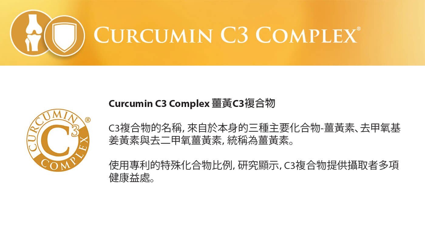 - 採用專利技術:薑黃C3複合物(CURCUMIN C3 COMPLEX)