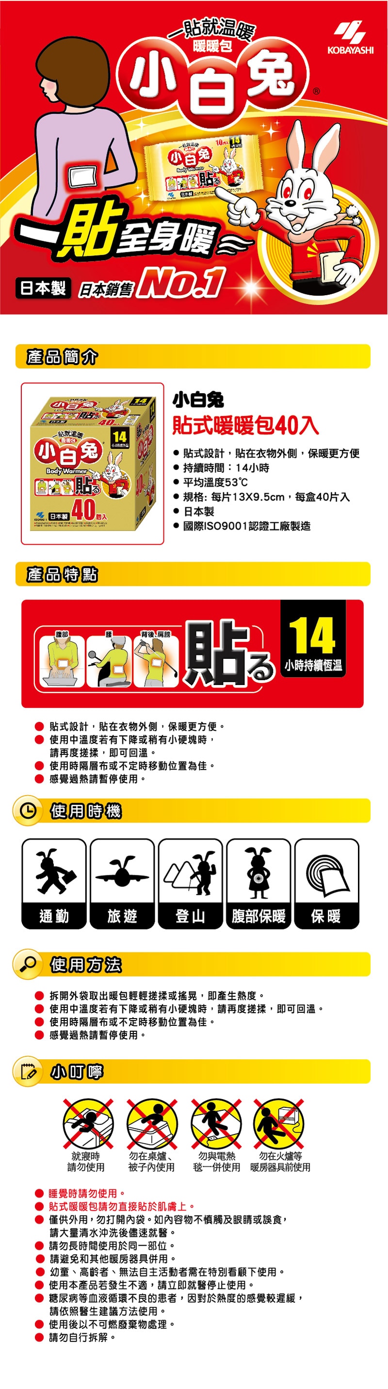 #101046 免運 Kobayashi 小白兔 暖暖包 貼式40入 【杰洋好市多代購】