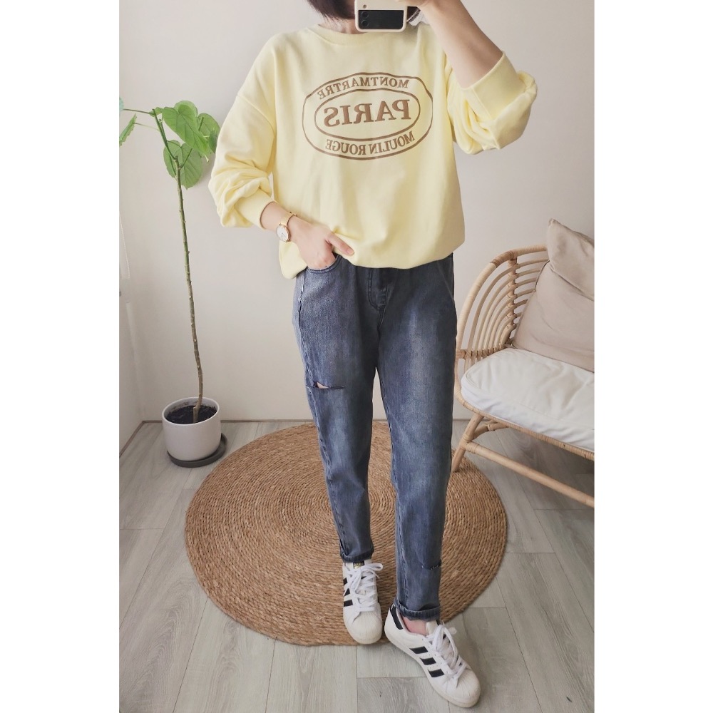 🌟街頭風🌟 彈力腰圍+抽繩💫割破款哈倫褲 男友褲 休閒褲💯