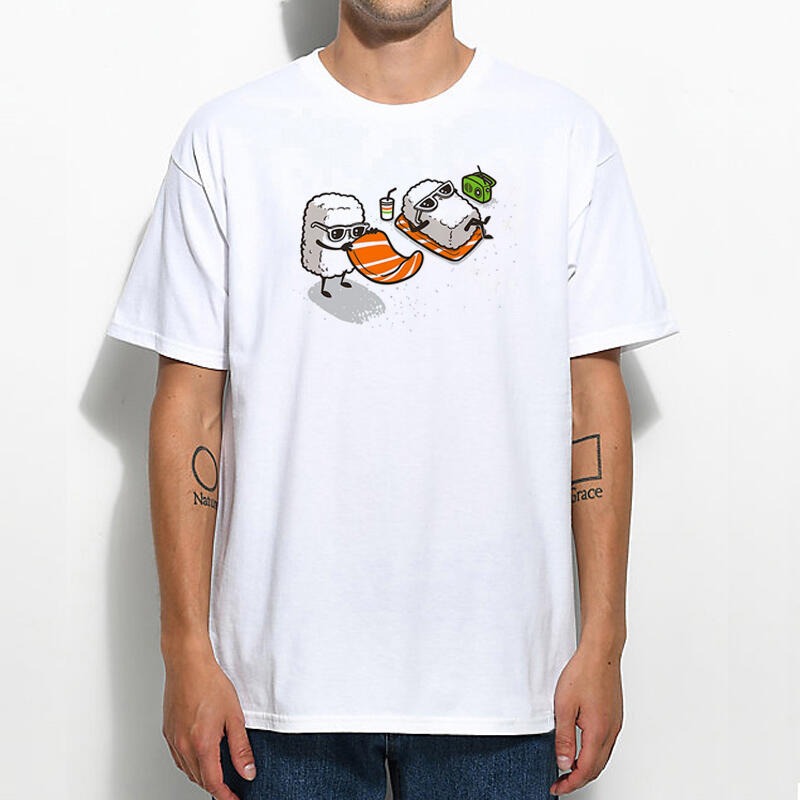 Summer Sushi 短袖T恤 白色 壽司 衝浪 滑板 文青 療癒 飯糰 擁抱 印花潮T