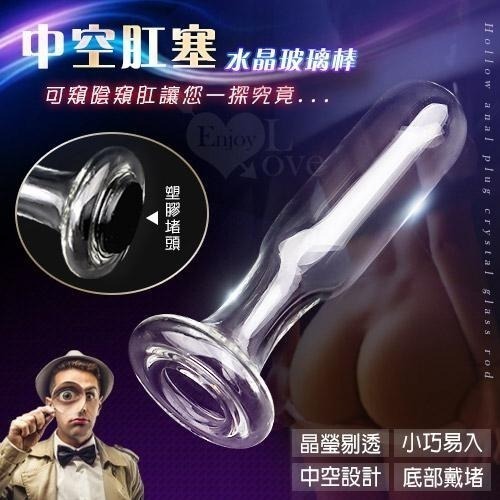 水晶中空玻璃棒 冰晶玻璃按摩棒 圓潤頭部 後庭塞 肛門塞 透明慾望陰道窺視器 情趣用品 附堵頭可注入液體★002042
