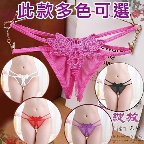 露臀開襠丁字褲 誘人開檔T字褲 雙彈力帶蝴蝶刺繡 免脫女生情趣內褲性感內褲薄紗網紗透膚