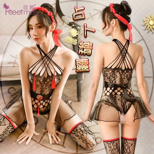交叉掛脖流蘇印花腰封透紗裙襬四件式網衣/情趣貓裝/情趣網衣/情趣連身衣/性感連身網衣/貓裝連身衣/貓裝網衣/情趣服裝服飾