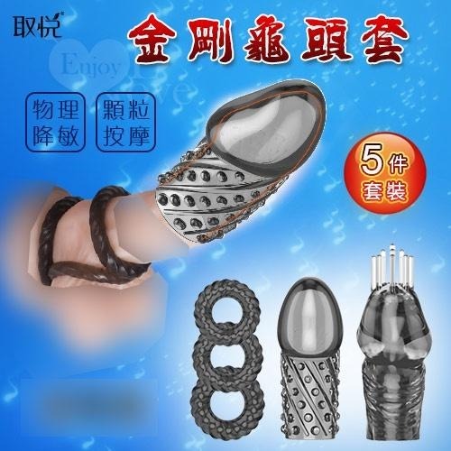 龜頭套+持久套環 五件套裝❤顆粒挑逗/毛刷刺激/降敏感慢射/鎖精/鎖莖/鎖根/鎖蛋/持久套環/老二陰莖增長加粗套
