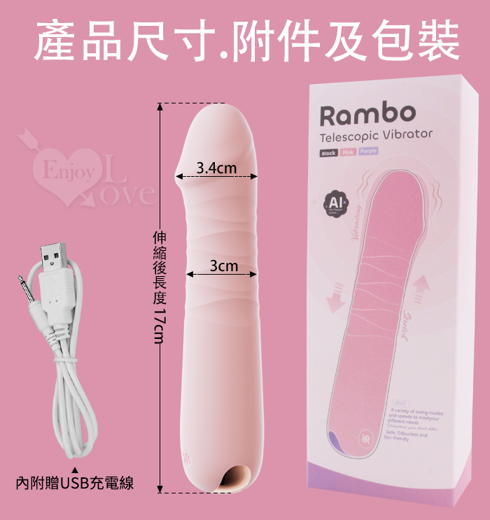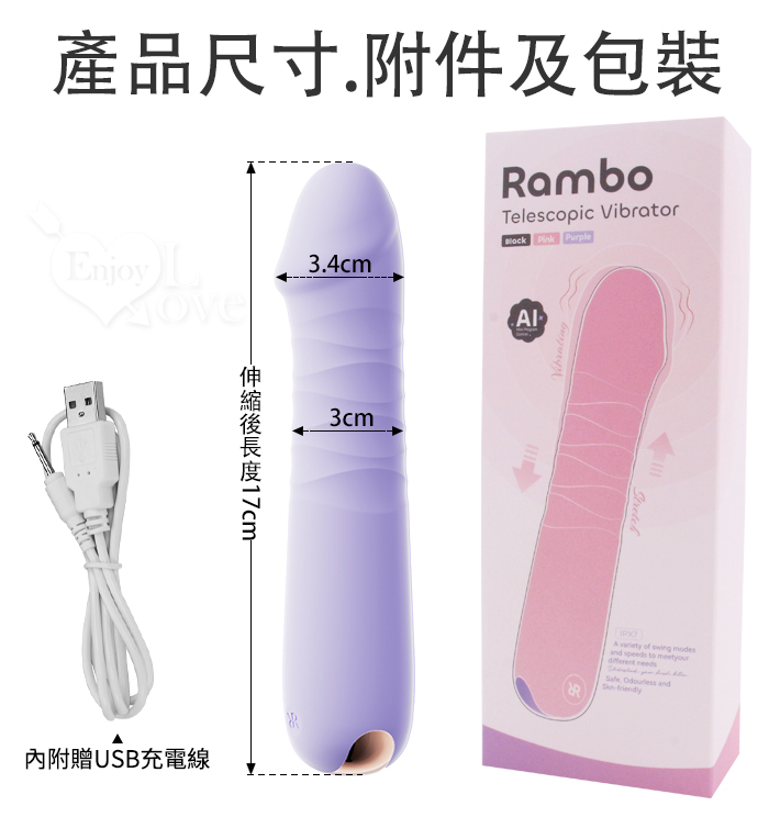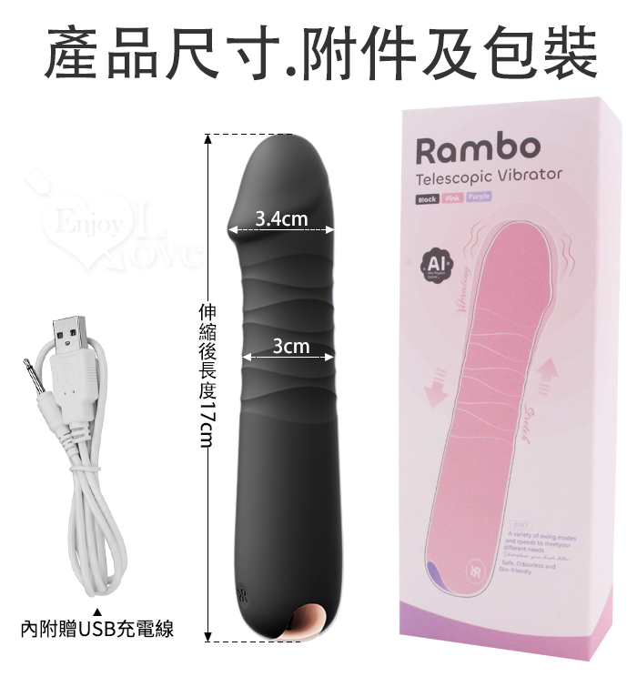 蘭博仿龜頭 老二伸縮按摩棒 抽插變頻震動自慰按摩器 舒適入體 螺紋摩擦刺激 情趣用品 USB充電 逼真肉棒 003413