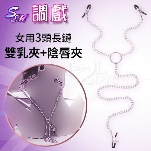 SM調情‧女用3頭長鏈【雙乳夾+陰唇夾】奶頭夾/乳頭夾/夾奶頭/夾乳頭/唇陰夾/SM用品/SM道具★003352