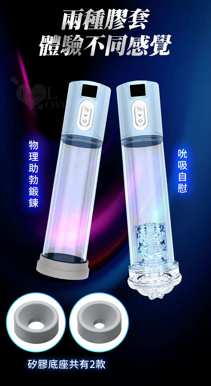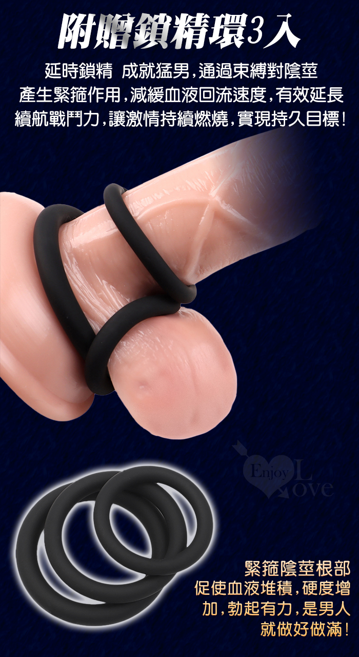 兩種可互換的附件有助於形成密封狀態並牢牢地撫摸您的肉棒。
