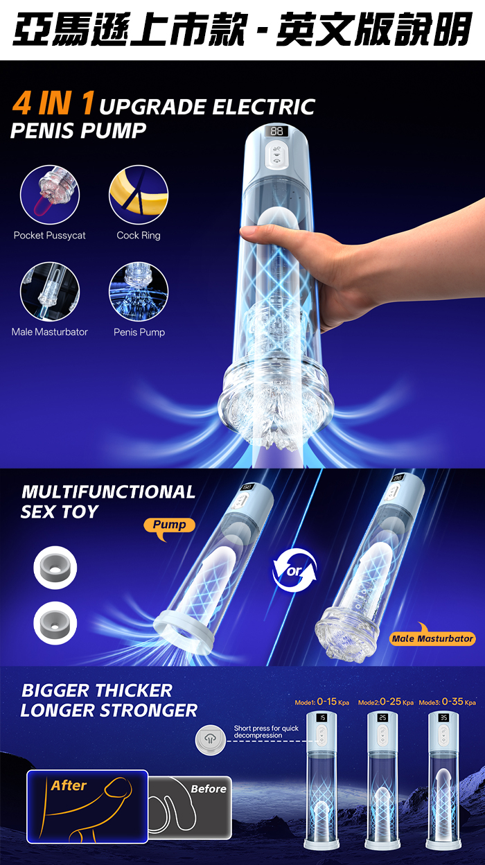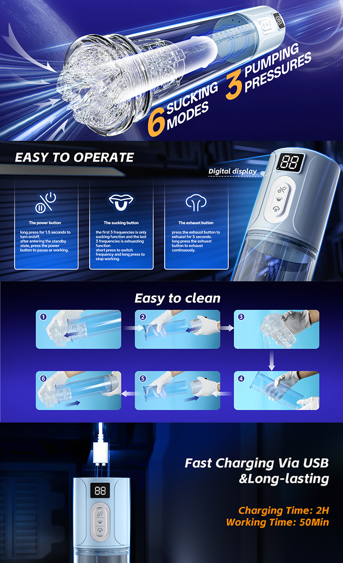 通過逼真的間歇性吸力享受最大的樂趣,自動擠壓您的肉棒並感覺就像真正的性愛體驗。從6種模式中選擇您喜歡的!