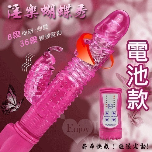 最新強力電動伸縮按摩棒,可同時震動陰道、陰核,震動力強勁!耐用、耐操,同時可震動,遠遠超越了男性陽具所能發揮的體能極限,強烈的戳幹力,幾乎讓人無法一手掌握,再怎麼強烈的燎原慾火,也會被它所撲滅夷平。中間的環紋部分不停地伸縮、抽動,在您的私處進出、摩擦;小蝴蝶的拍打、添吸著您最敏感的陰蒂……