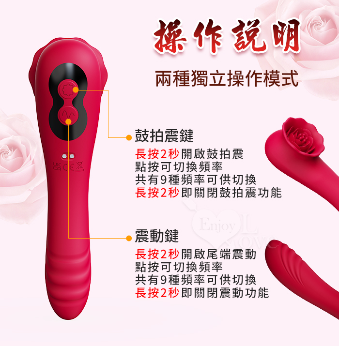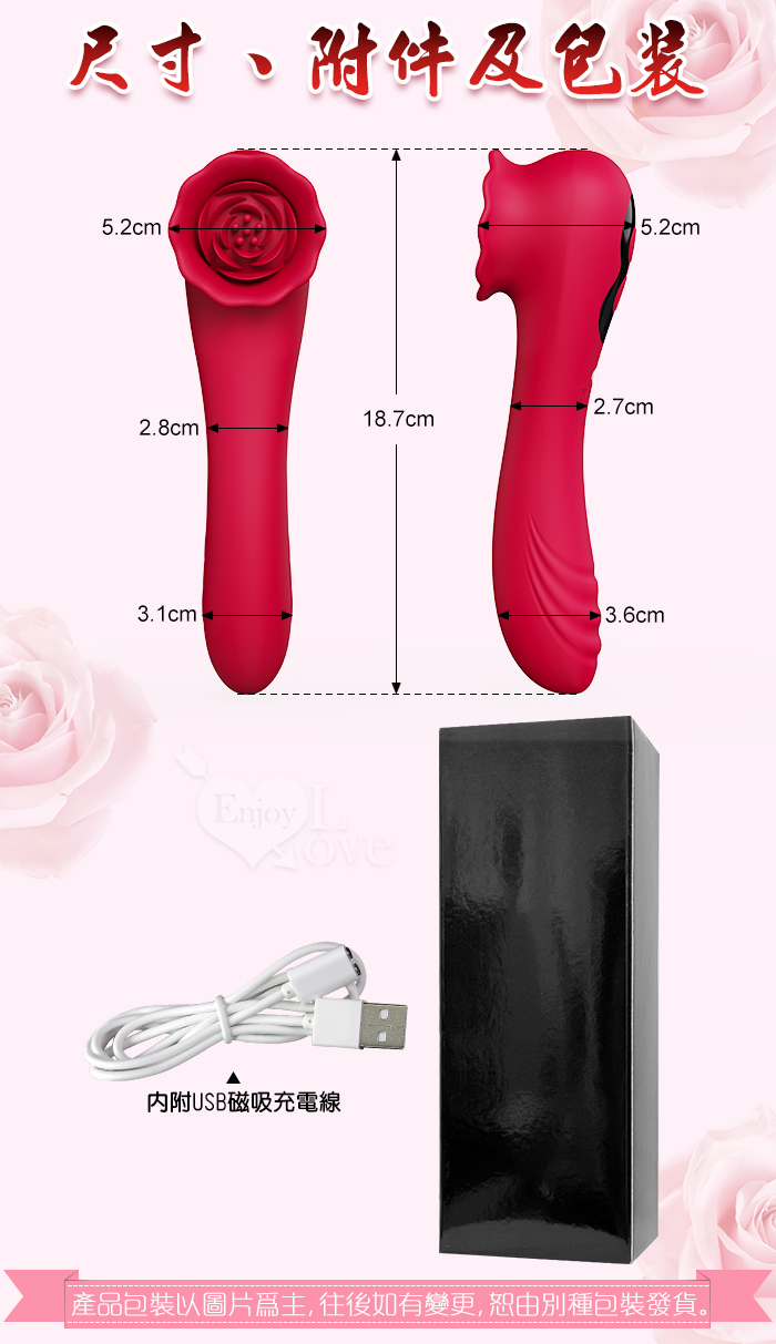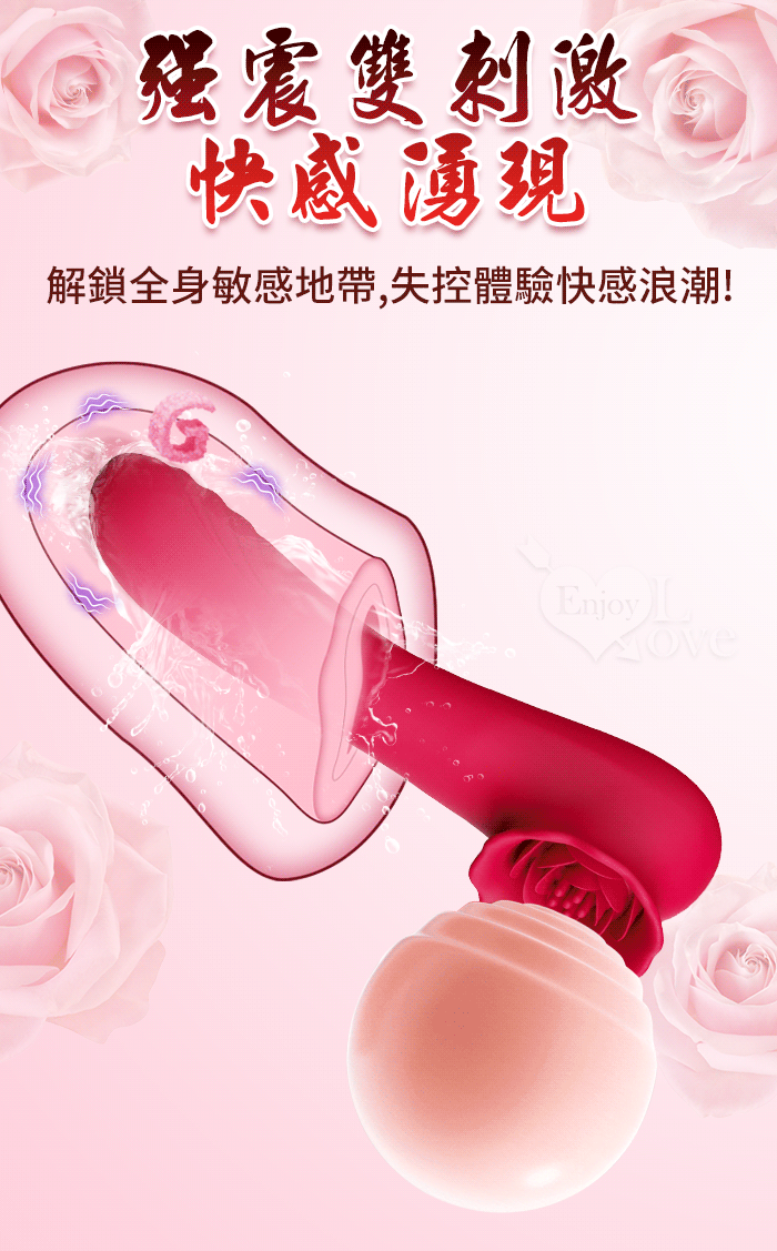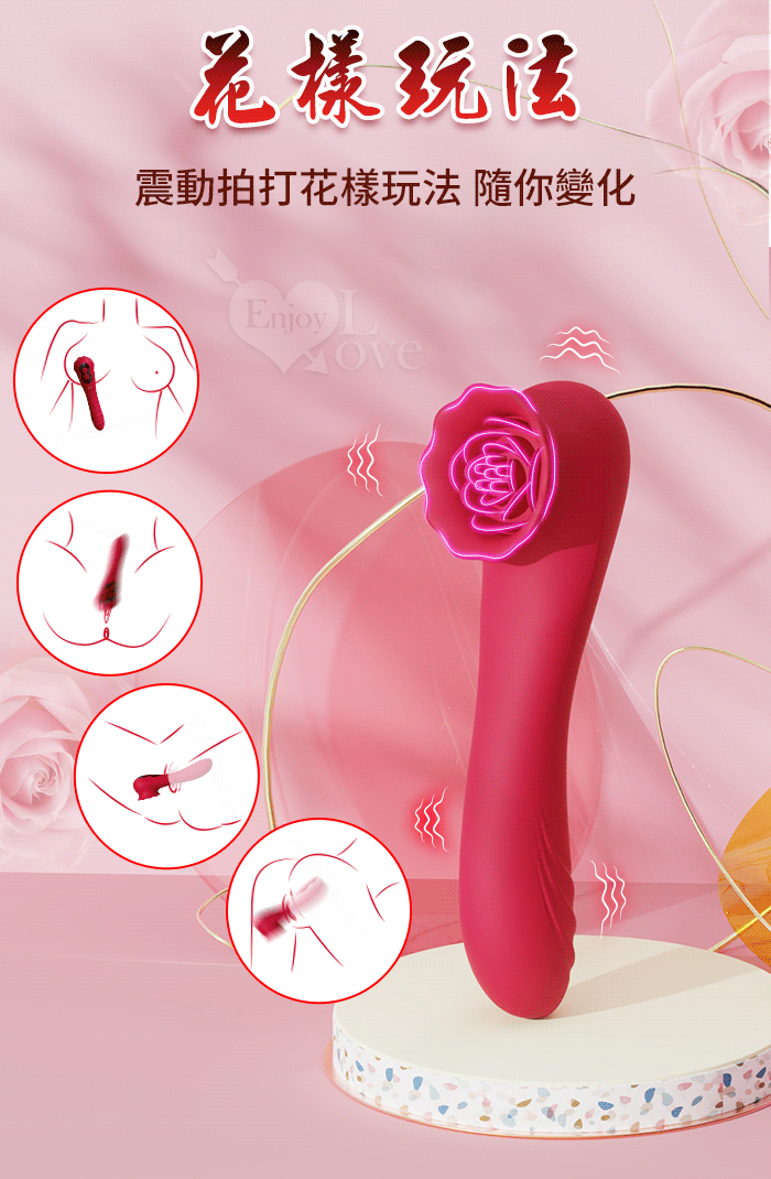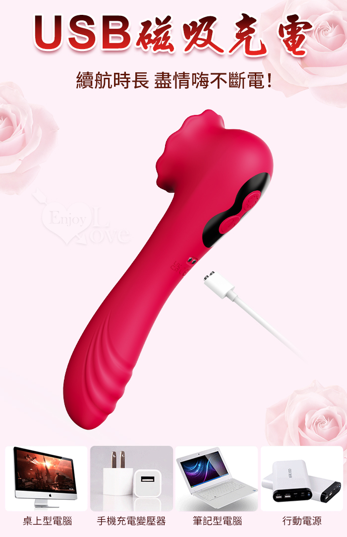 玫瑰花朵 超強悍乳陰刺激強震雙震多用途按摩棒 變頻鼓拍震動 矽膠舒適 USB磁吸充電 女用自慰器情趣用品 002018