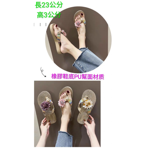 人字拖鞋夏季時尚花朵渡假沙攤鞋長23公分通合36碼