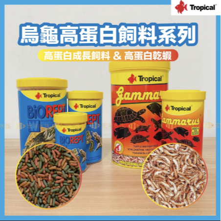 1️⃣ TROPICAL高蛋白乾蝦 📌此款規格有重量瓶1000ml,如有需要歡迎私訊聊聊 ⭕️實際使用評價 ✅市面上乾蝦飼料中,保留蝦子最完整的一款,除了營養完整的保留下來以外,在飼養時也較不會汙染水質,有些他牌的乾蝦碎碎的放入水中後碎屑太多會很容易汙染水質 ✅Tropical是歐洲飼料大廠龍頭之一,品牌絕對是可以完全信任的,目前台灣給 Mr.Aqua名人水族代理 ✅飼料的適口性佳,非常適合觀賞魚、烏龜、兩棲爬蟲使用 ✅如是水龜長期使用此款,可預防黴菌感染 ⭕️產品特性: (觀賞魚、烏龜、兩棲爬蟲專用) 1.本產品蛋白質含量高,嗜口性佳,用冷凍急速乾燥,完全保持其中的各種營養份。 2.為野生魚、生 餌轉換飼料過渡食物,肉食性魚主食,也可用於肉食性兩棲爬蟲。 ⭕️使用方法: ●餵食方法:每天餵食數次,餵食量以3分鐘內吃完為限。 ⭕️其他說明: ●主要原料:乾燥殺菌的天然蝦 2️⃣ 烏龜成長飼料 📣【飼料規格特性】長條狀 大小約1cm、上浮性飼料 ✨ 還在挑選適合龜寶寶的品牌烏龜飼料嗎? 內有影片分享給朋友們 ✨ ⭕ 巴西龜.屋頂龜.豬鼻龜...等水龜類皆適用 ⭕ ✅ 產品特性:針對烏龜.兩棲類爬蟲所需營養調配而成的健康飼料 ✅ 含豐富的鈣、礦物質、維他命與酵母菌,更能促進烏龜的腸道健康,降低水質污染。 ✅ 餵食方法:每日2至3次,如未攝食完,請清除殘餌,降低水質污染。 ✅ 主要原料:動、植物性蛋白質、南極蝦粉、甲殼素、維他命、酵母菌。 ✅ 保證成份:粗蛋白質40%、粗脂肪6%、粗纖維3%、水份10%。 📌也可搜尋 Tropical 📌【高蛋白乾蝦】尚有1000ml的大罐裝、【Tropical烏龜主食】尚有5L裝