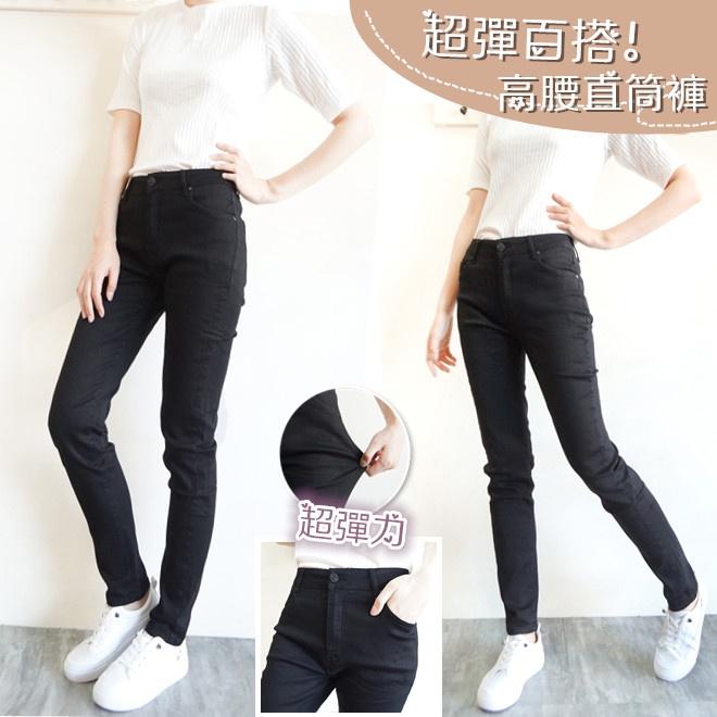 高腰顯瘦彈性黑褲 小中大尺碼 超彈力小直筒 上班黑褲 ins素黑舒適百搭 休閒長褲 黑褲【553-653】S~3L