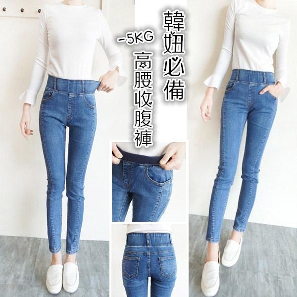 韓版激瘦 -5KG高腰收腹牛仔褲 彈力牛仔褲 韓國熱銷款 鬆緊拉彈 修身小腳 ins素色百搭【633-659】S~XL