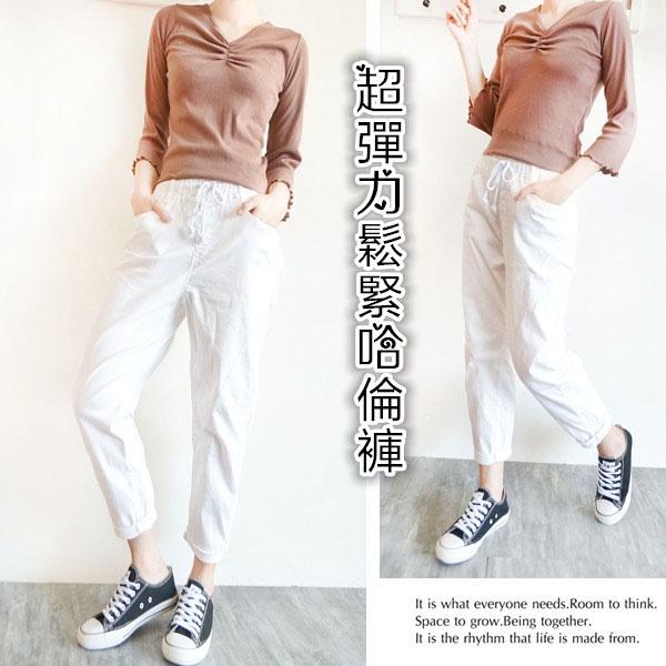 高腰鬆緊 白色哈倫褲女 彈力顯瘦 男友褲 休閒褲女 寬鬆百搭 鬆緊腰綁繩 白色長褲【631-304】S~XL