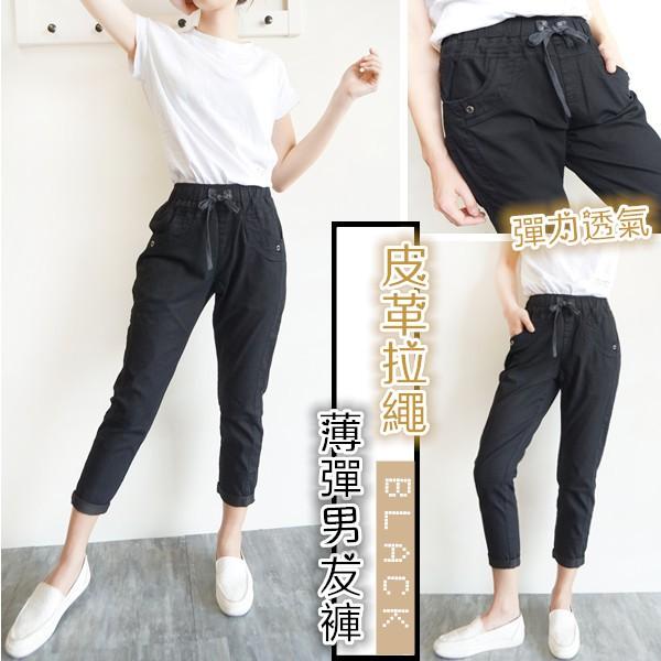現貨免運 男友褲 休閒褲 素黑百搭 綁繩鬆緊腰 顯瘦超彈 ins 寬鬆 BF 哈倫褲 高腰【227-901】S~XL