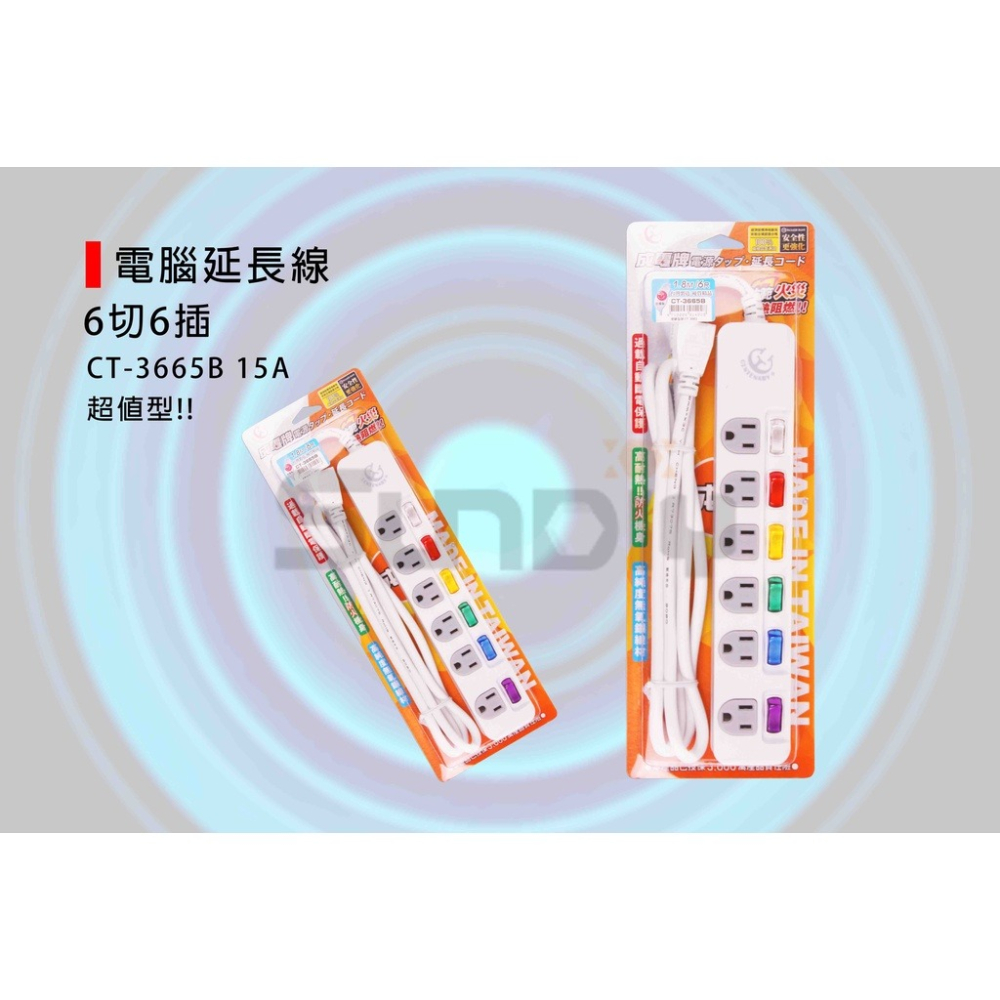 (電工)成電牌 電腦延長線(6切6插)超值型/家用延長線/延長線插座-(CT-3665B)6尺/9尺/15尺/21尺