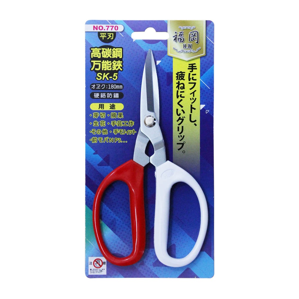 福岡H.W/紅白柄剪刀/萬能剪/事務剪/剪刀/家事剪/加工剪/裁縫剪/硬鉻防銹-180mm