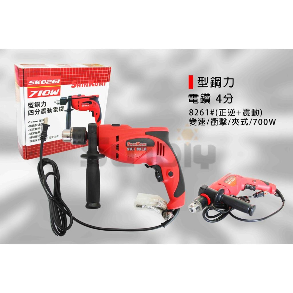 (燦光五金)電鑽/衝擊電鑽/電動起子/扳手/起子機 型鋼力 4分 8261#(正逆+震動)變速/衝擊/夾式/700W