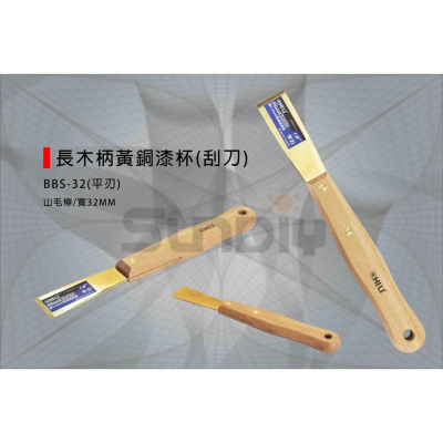 (燦光五金)長木柄黃銅漆杯(刮刀)/低火花黃銅刮刀/滾輪除銹除鏽刮刀/油漆刮刀/山毛櫸 BBS-32(平刃)寬32MM