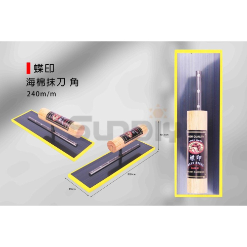 蝶印/海棉抹刀/角推刀/鐵抹刀/鋼抹刀/水泥抹刀/推刀/鋼刀/泥做/批土/平整-240mm(黃)