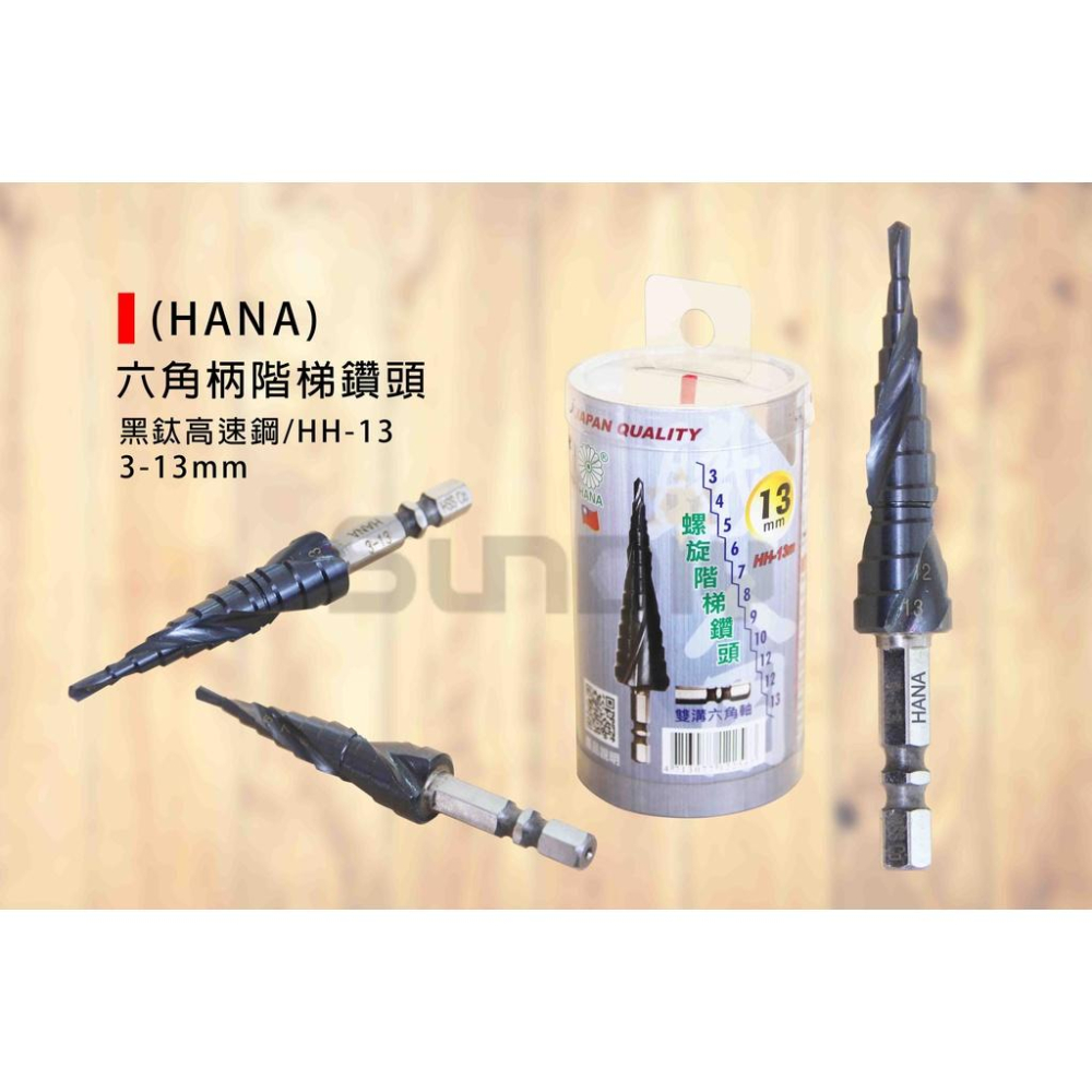 (燦光五金)六角柄階梯鑽頭/階梯鑽頭/階梯鑽尾/螺旋/鑽尾/六角柄電鑽/梯型圓穴鑽 (HANA)黑鈦高速鋼/HH-13