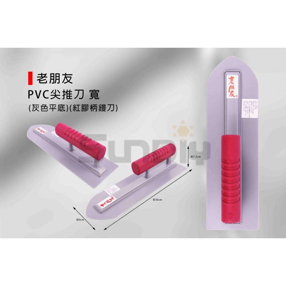 (推刀)老朋友 PVC尖推刀/水泥抹刀/推刀/鏝刀/鋼刀/泥做/批土/平整-(灰色平底/紅膠柄鏝刀)