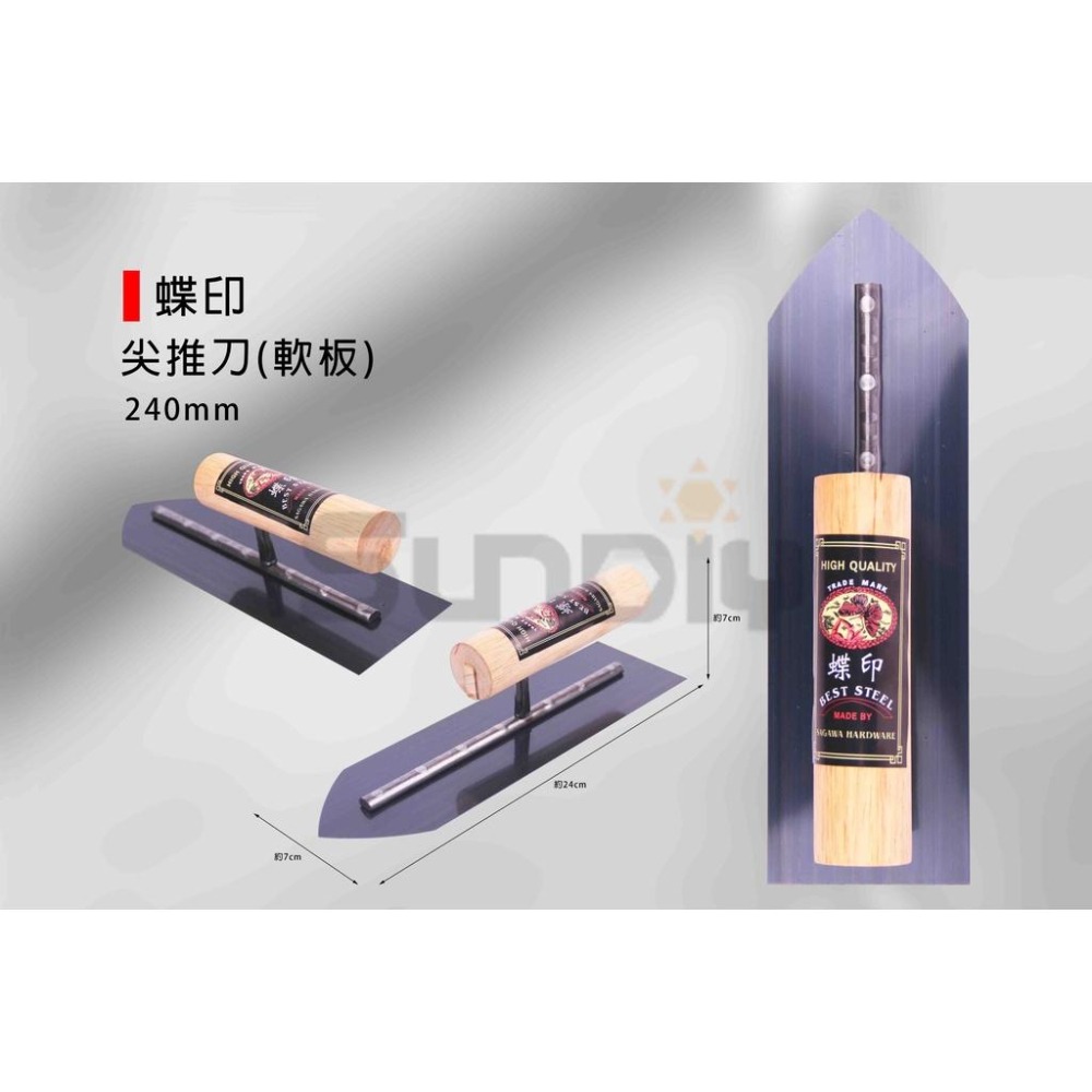 (推刀)蝶印 尖推刀(軟板)/鐵抹刀/鋼抹刀/水泥抹刀/推刀/鋼刀/泥做/批土/平整-240mm/8寸(綠盒)