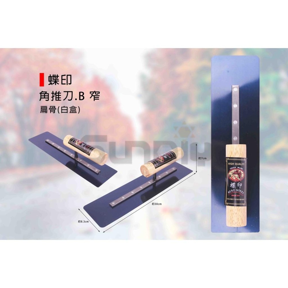 (推刀)蝶印 角推刀.B/鐵抹刀/鋼抹刀/水泥抹刀/推刀/鋼刀/泥做/批土/平整(1尺)扁骨-(寬9.5/窄8cm)白盒