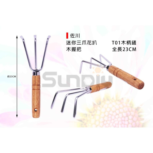 迷你三爪花扒/木柄三爪耙/三齒耙花耙/除草/草扒/耙子