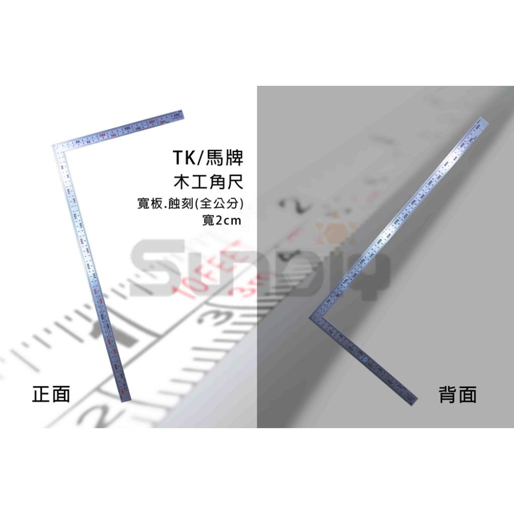 (燦光五金)木工角尺/不鏽鋼木工角尺/90度/直角尺/木工/木作/角度尺/拐尺 TK/馬牌 寬板2cm.蝕刻(全公分)