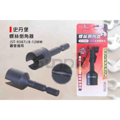 (燦光五金)螺絲倒角器/牙條倒角器/牙條/管材/棒材去毛邊/六角柄起子機電鑽用 史丹堡(ST-9387)8-12MM通用