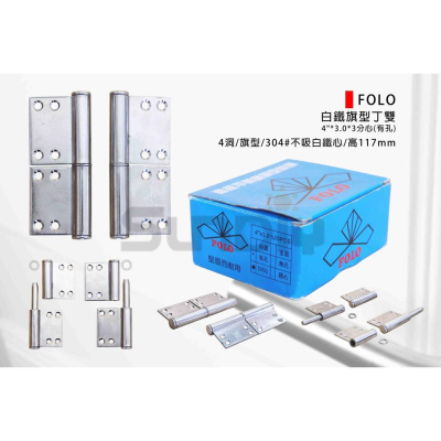 (燦光五金)白鐵旗型丁雙/釘雙/鉸鍊/合頁/頁片 FOLO 4"*3.0*3分心(有孔)304#不吸白鐵心/高117mm