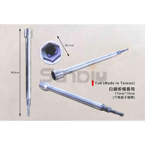 (手工具-套筒)白鋼板模套筒(起子頭柄)/板模適用/起子機用-17mm內12角套筒*全長24cm