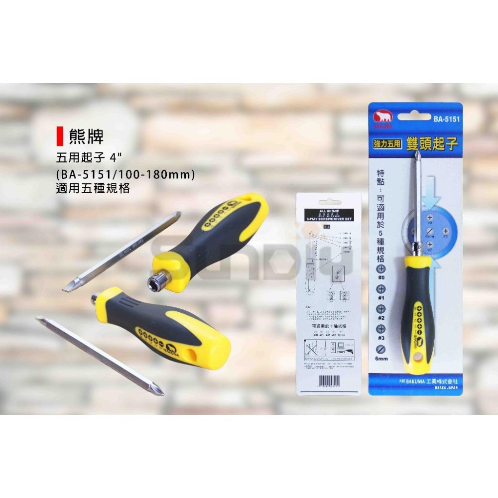 BAKUMA熊牌/五用起子/強力五用/雙頭起子/可伸縮100-180mm/適用於5種規格