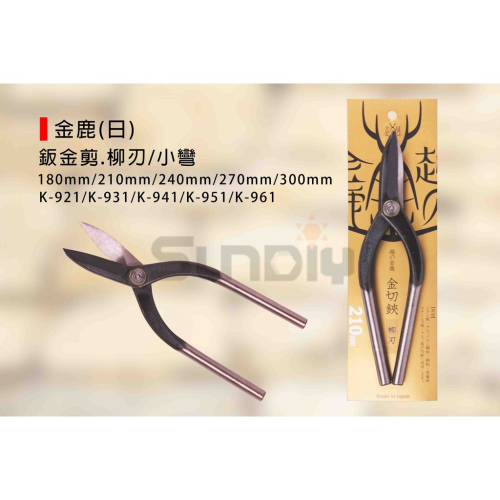 金鹿(日)鈑金剪/浪板剪刀/鐵皮剪/板金剪/武力剪/鐵板剪(柳刃/小彎)