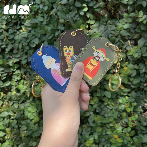 以台灣民間信仰六大神明(媽祖、觀音、虎爺、文昌、月老、財神)為靈感,手工打造真皮皮革小吊飾,設計成可打開的保護套,讓你輕鬆收納符籤、小紙條、護身符等小物。