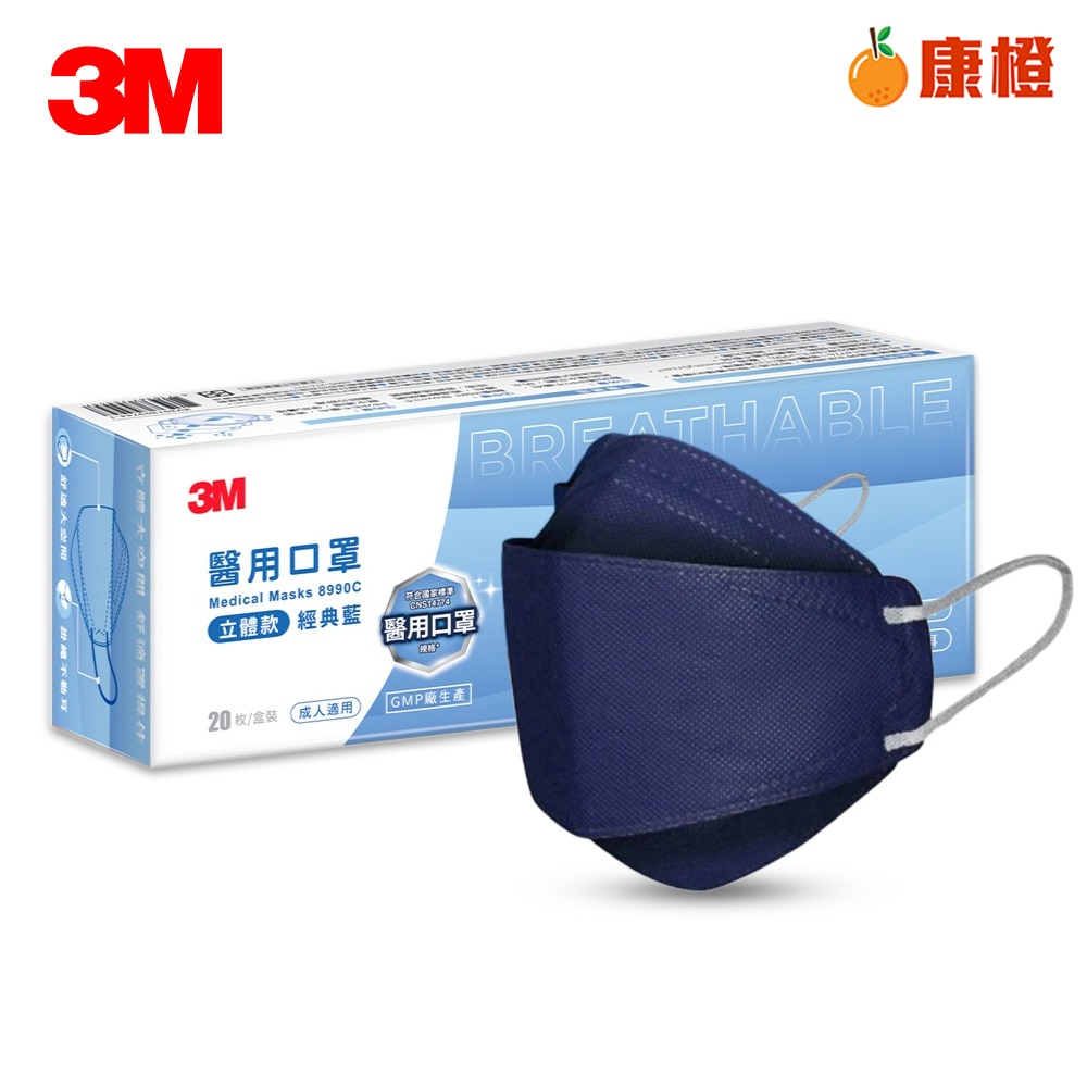 【3M】Nexcare 8990C 醫用口罩 成人立體款 - 經典藍 (20片/盒) 3D立體