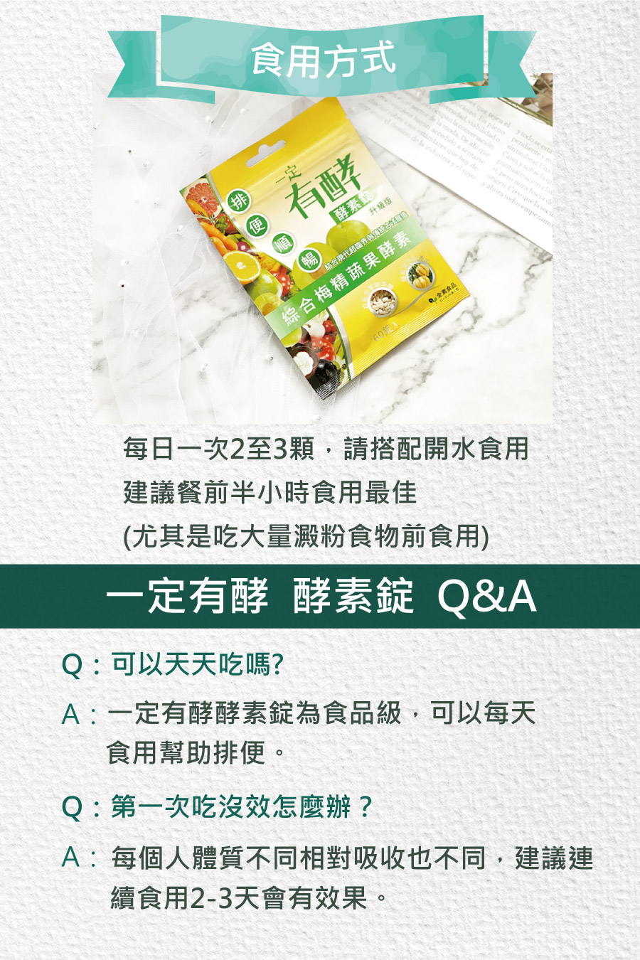 食用方式: 3顆/一天一次,餐前食用較佳。