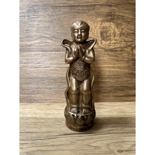 明清古董善財童子!是觀音菩薩的隨侍!其法像極具靈動,整體銅材質穩重。今特來找恩公,能捨難捨的人只要有心,即開了善財的好緣份!輕鬆得寶