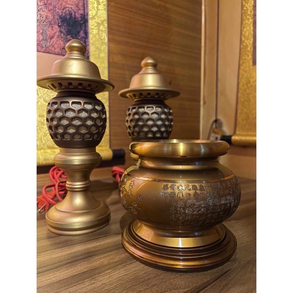台灣製供佛純銅手染光明燈+純銅香爐很重真材實料一起賣只要六千原是供千手觀音用已移駕至大廳所以釋出給有需要的朋友可省很多錢