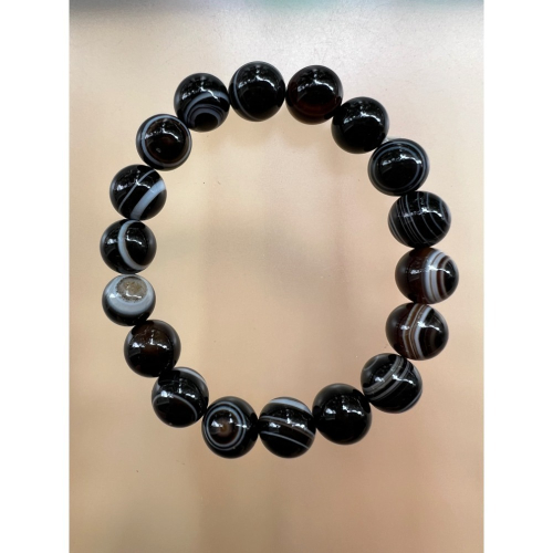 剛毅堅忍、增長智慧之意。虎紋天珠帶有連續的鋸齒紋路,引含有「伏惡」的力量,藏傳佛教信徒認為其圖騰象徵東方金剛部,可以降服修持者內心或外在的障礙。國人稱虎紋天珠為「閃電天珠」