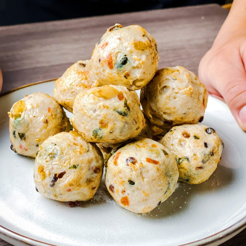 內含紅蘿蔔、荸薺、香菇絲、青豆仁