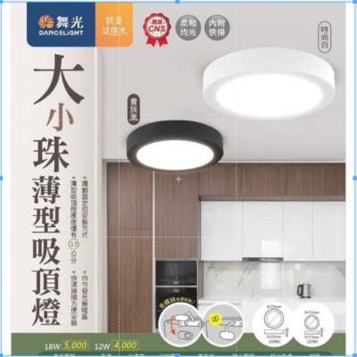 ◆ 尺寸 : Φ170xH40mm(小珠/12W)/Φ220xH40mm(大珠/18W)